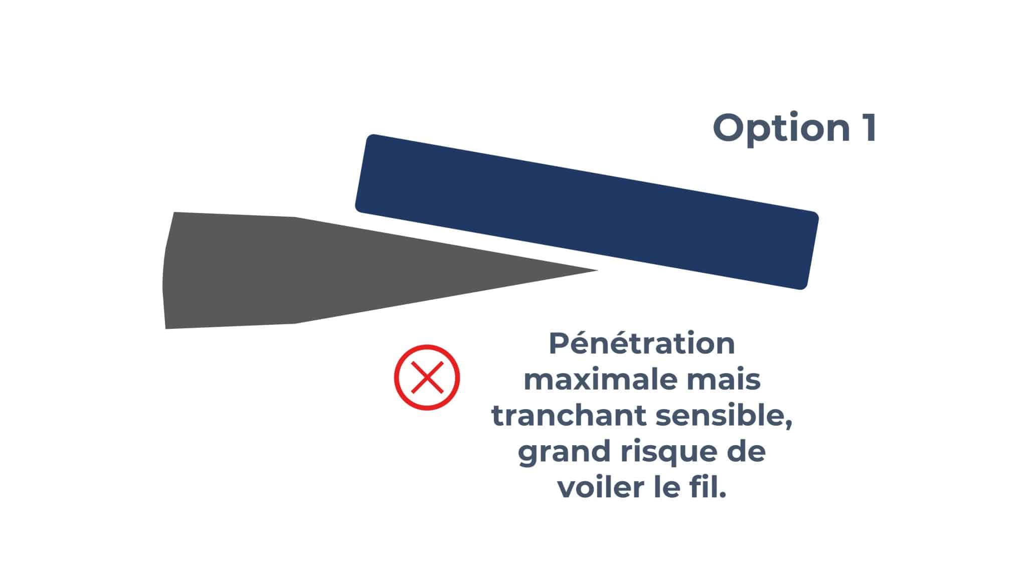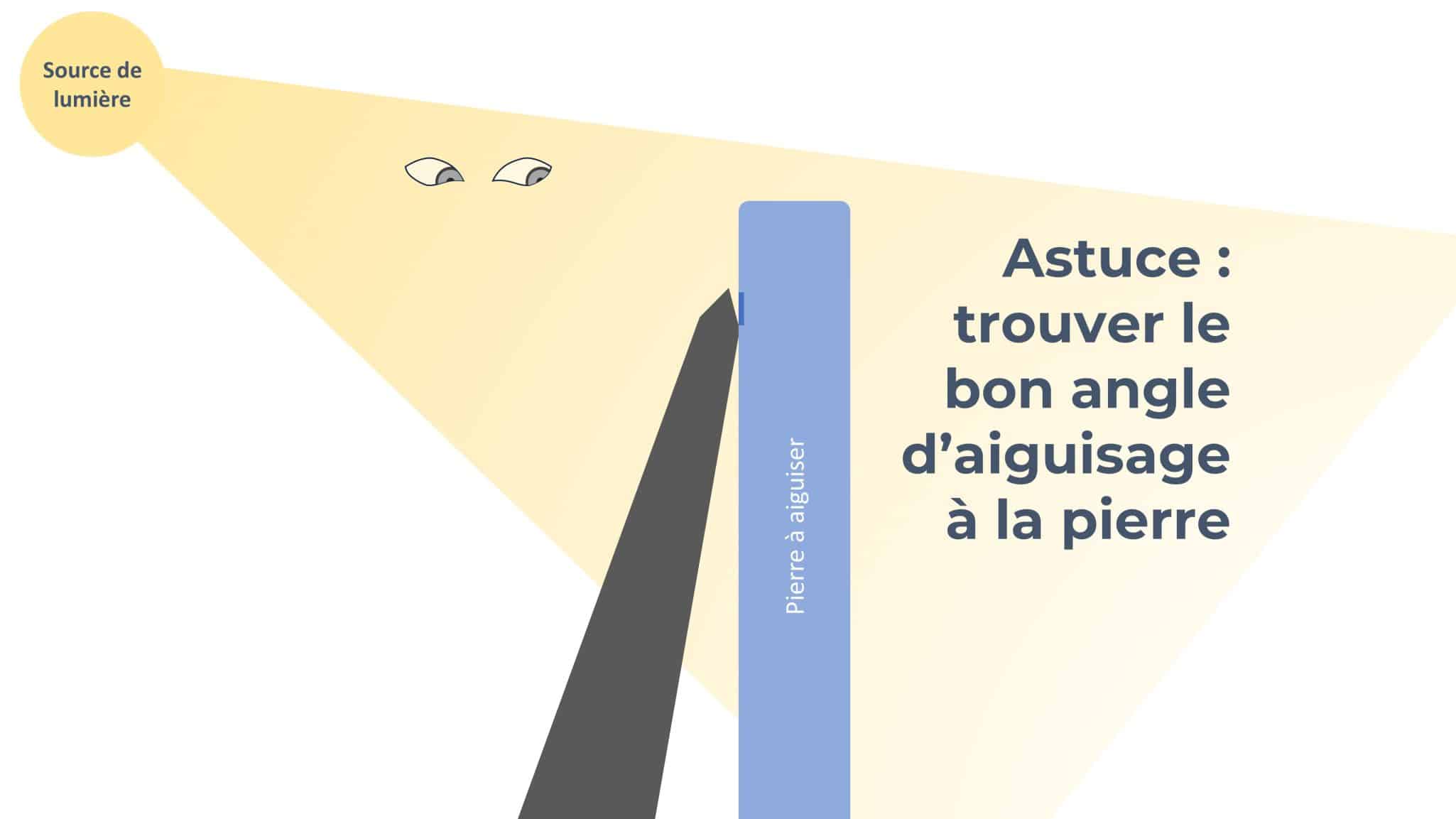 Notre biseau secondaire est ce qui détermine la robustesse de notre tranchant. On peut lui donner un angle jusqu’à 45° sans que cela n’abaisse considérablement les performances. Le biseau primaire, quant à lui, ne doit jamais être en dessous de 15°. La méthode que je vais vous partager ci-dessous permet de garantir un angle entre 17 et 20°, un bon équilibre entre robustesse et efficacité.