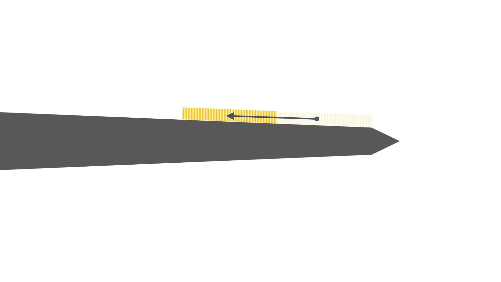 Pour rappel, nous devons travailler deux angles lorsqu’on aiguise une hache. Le premier est le biseau primaire, c’est sur lui que repose la capacité de pénétration de la hache. En effet, la hache est un outil lancé. Lorsque le tranchant est projeté dans la matière, c’est ce qui se trouve derrière celui-ci qui est majoritairement en friction avec le bois.